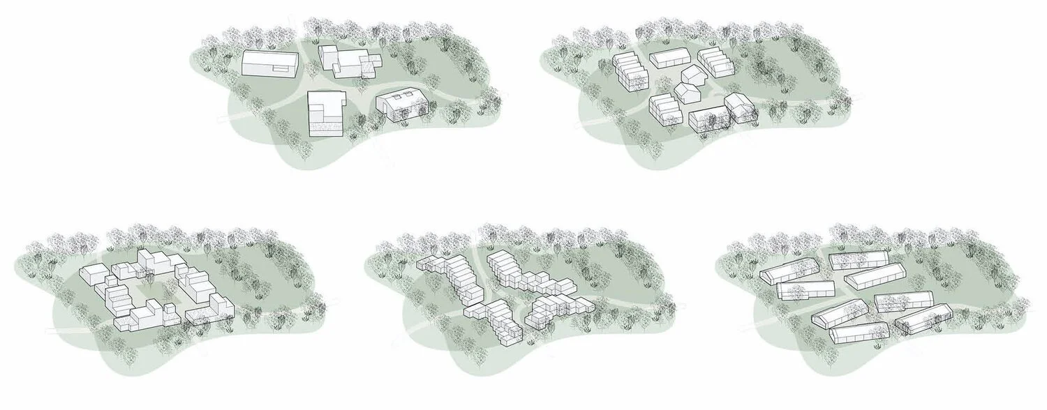 De buurtschappen en het landschap van weleer vormen de inspiratie voor de nieuwe buurt. Het casco van het plan bestaat uit landschappelijke kamers, grillig van vorm, met hierin velden. Alsof de natuur jarenlang het landschap heeft gevormd en de woningen in de resterende ruimte zijn geplaatst. Binnen de velden kunnen de sociale clusters gaan landen. Deze clusters worden opgebouwd als sculpturen in het landschap.
