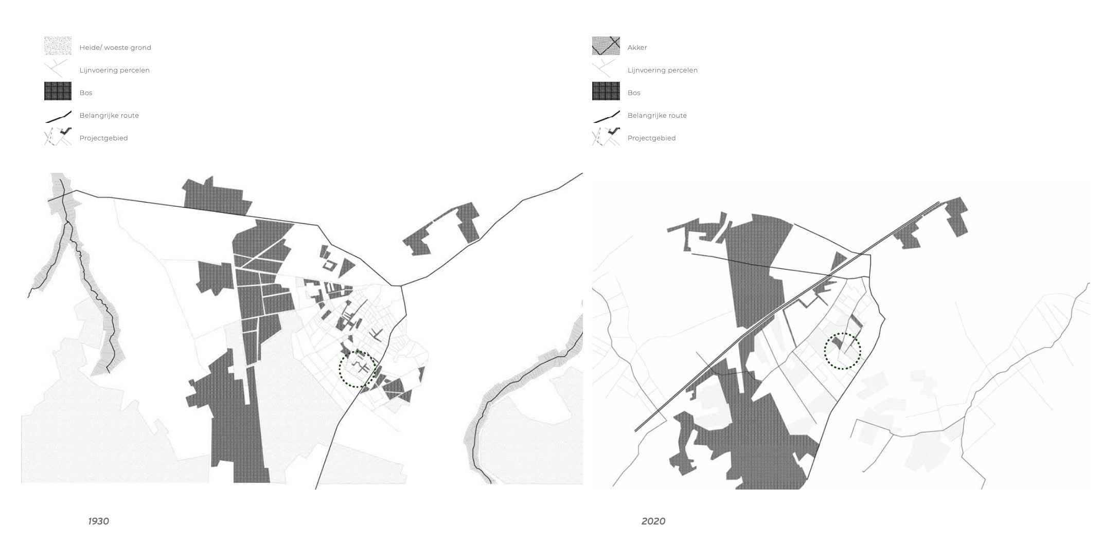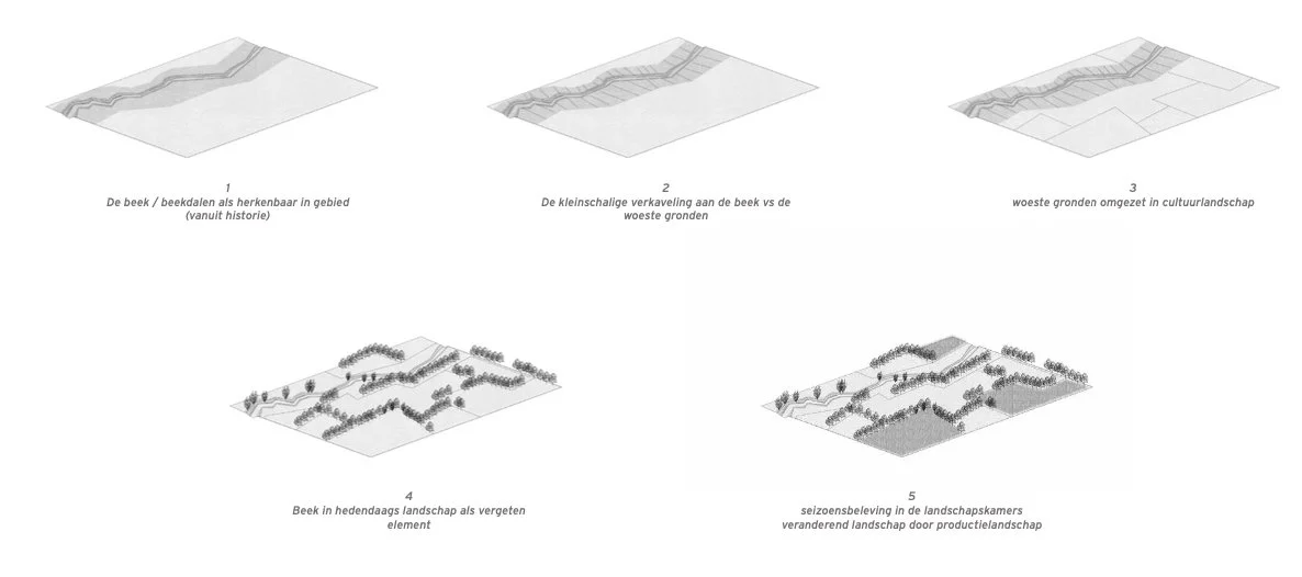 De locatie aan de Postelseweg in Eersel is onderzocht aan de hand van de opzet: verleden (wat is het verhaal?), heden (wat observeren we?) en toekomst (waar willen we naar toe?). Een belangrijk uitgangspunt voor deze locatie vormt het landschap: een ruimtelijke analyse wordt ingezet om aanknopingspunten te vinden voor het concept. Daarnaast wordt het bestaande woonbeleid gecombineerd met interviews met de bewoners om de woonwensen voor dit gebied op te stellen.