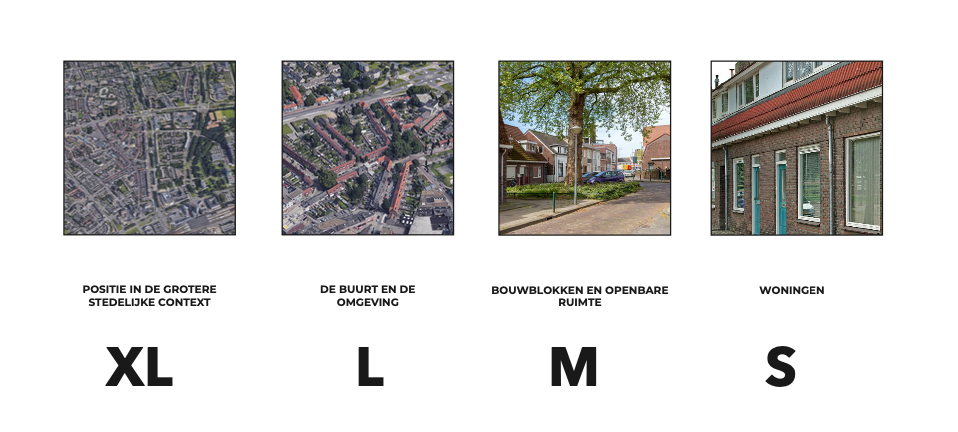 gebouwen bepalen ritmiek van de straat, passende overgangszones voor verschillende woningtypes