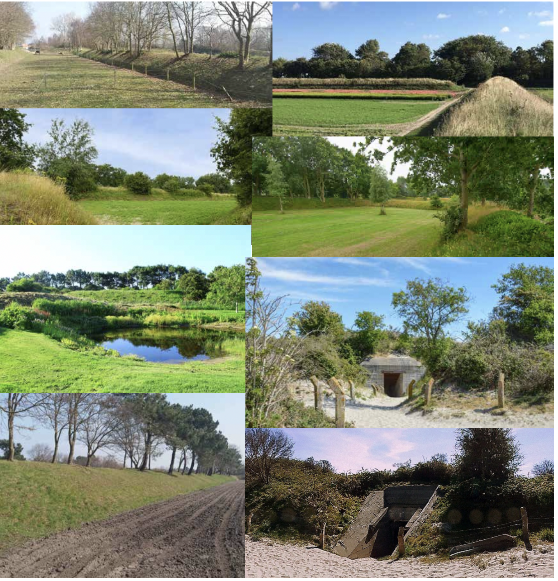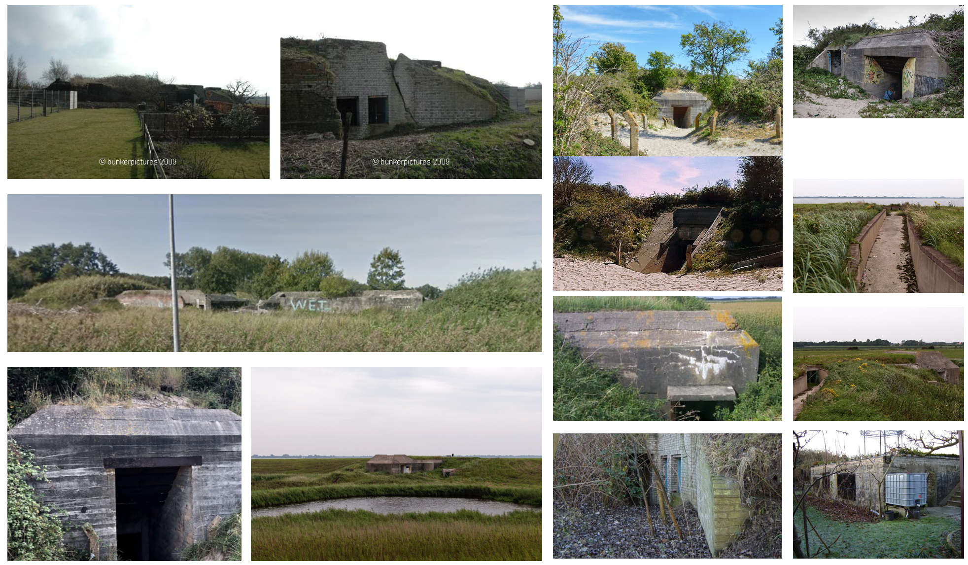 Uniek voor de omgeving en het landschap zijn de ingegraven bunkers. Het stoere materiaal van beton geeft een mooi contrast met de natuurlijke omgeving. Deze bunkers zijn geheel of gedeeltelijk in zandwallen te vinden, of in het open veld, waar ze begroeid zijn met grassen. De bunkers die op Goeree-Overflakkee zijn gebouwd door de Duitsers zijn onderdeel van de Atlantikwall. Tussen 1942 en 1945 hebben er wel 300 stellingen gestaan op Goeree-Overflakkee. Toen de WOII ten einde liep werden de bunkers verlaten en raakten al snel bedekt onder een laag zand en wildbegroeiing. De bunkers huisden verschillende programma’s, zoals watervoorziening, opslag, observatiepunt, toilet etc. De stellingen aan de oostzijde van Stellendam vormen de verdedigingslinie aan de landzijde (Landfront). Deze bunkers vormen een inspiratie voor het verdere ontwerp en materiaalgebruik van de woning.