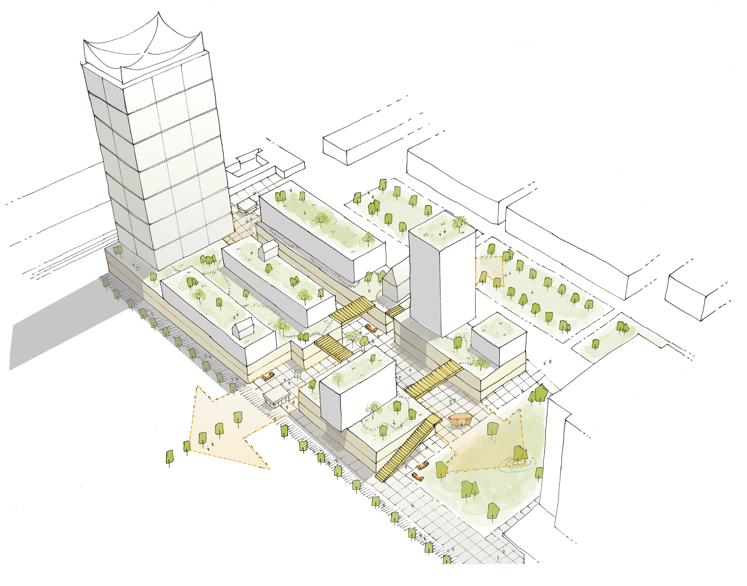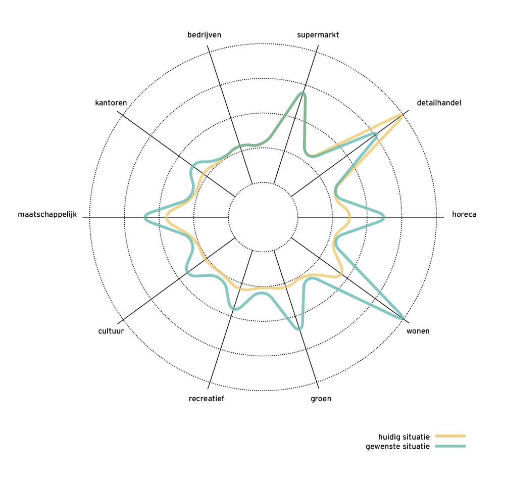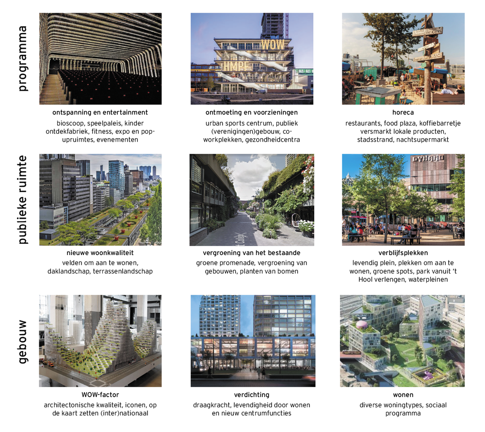 Daarnaast dient er een verschuiving en verbreding plaats te vinden. Nieuwe magneten worden toegevoegd in programma (ontspanning, entertainment, ontmoeting, Horea), in publieke ruimte (vergroening, verblijfsplekken, daklandschap, terrassen) en gebouwen (architectonische kwaliteit, iconen, verdichting, diverse woningtypes).